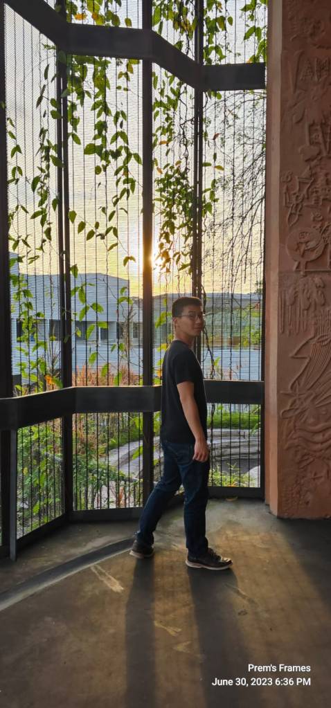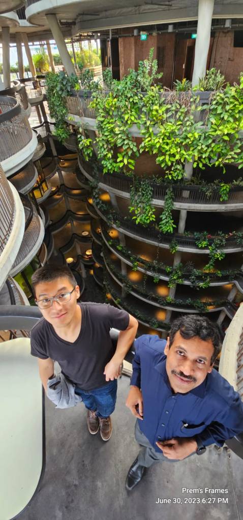 Toward the end of the day, I also had a chance to visit “The Hive”, one of the famous architectures of the NTU campus. It was indeed very impressive both from outside and inside. Inside had a kind of retro-feeling design in the color of copper or hive. I also liked all the plants inside and outside the building.