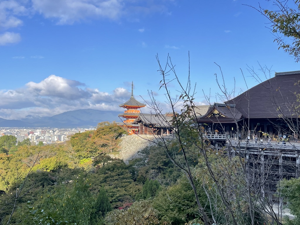 Upon arrival, I went directly to Kyoto from Haneda Airport. Although I was very exhausted from the long flight, I decided to enjoy tourism a bit, because there are so many historic places to visit in Kyoto! I went to Kiyomizu-dera temple, established in the 8th century during Nara period. It’s located on a mountain and looking toward the city, where the view is spectacular indeed.